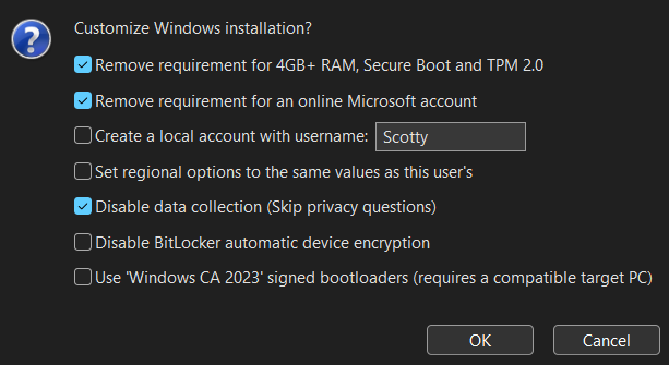 <div align="left"><figure><img src="https://1386492243-files.gitbook.io/~/files/v0/b/gitbook-x-prod.appspot.com/o/spaces%2FVmZRLBLROLwLaf9bT5Oc%2Fuploads%2Fgit-blob-09125191b867f5385f7c8d5a40b62f2c57d083aa%2Frufus_win_options.png?alt=media" alt="" width="575"><figcaption></figcaption></figure></div>