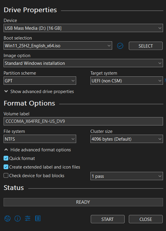 Rufus is another choice for advanced users with a lot more configurable options for your installation.