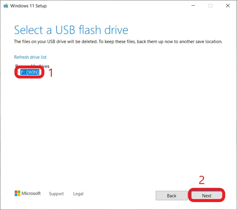 4. Select USB flash drive, then press next.